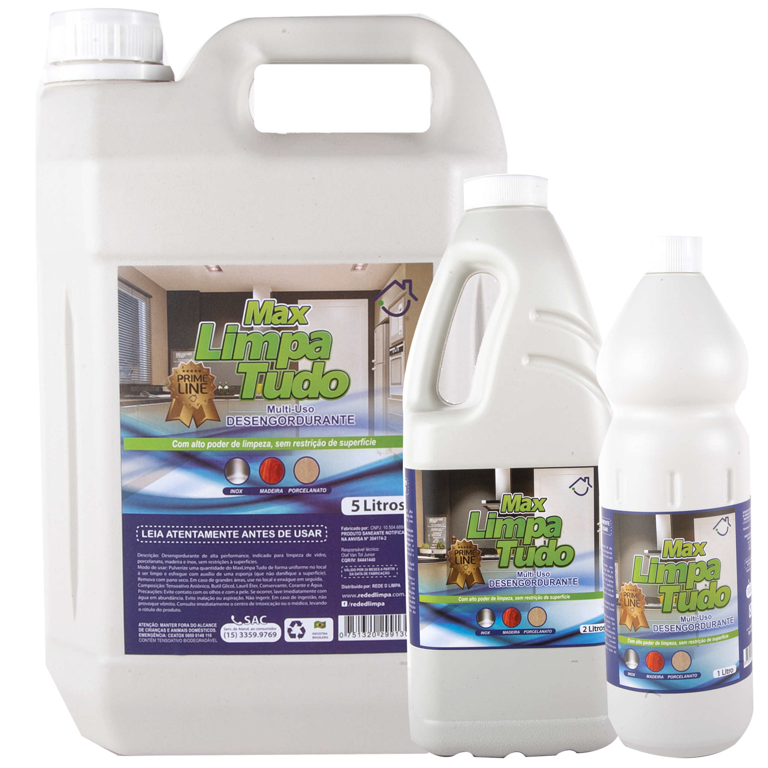 Desengordurante de alta performance, indicado para limpeza de vidro, porcelanato, madeira e inox, sem restrições à superfícies.